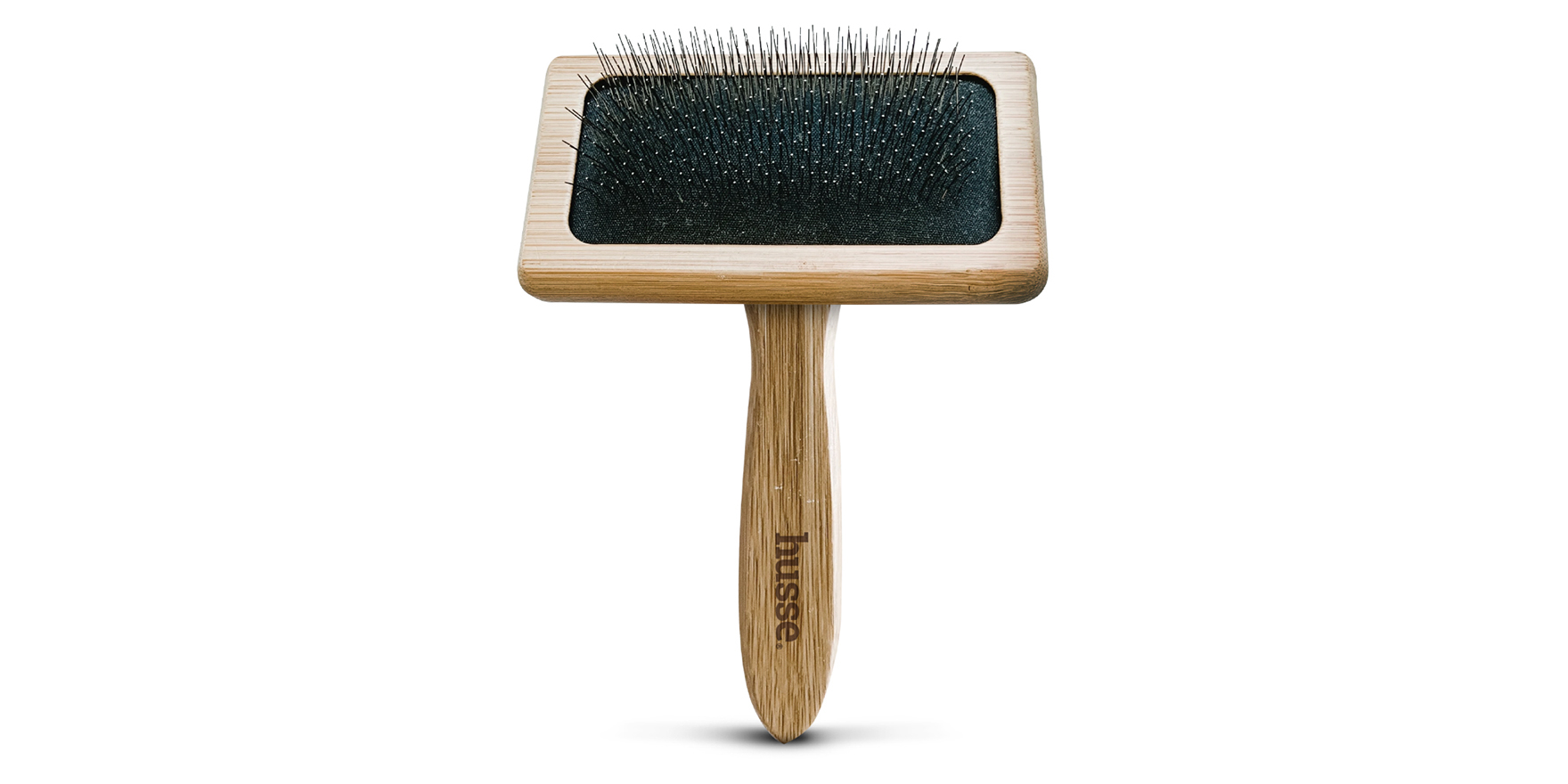 Rektangulär karda med handtag i bambu, vinklade stålpinnar inlagda i en mjuk gummiluftkudde. Lämplig för husdjur i alla storlekar med alla olika hårlängder och tjocklekar, särskilt bra för djur som fäller. De vinklade stiften tar enkelt bort löst hår, små knutar och smuts från pälsen. Använd Karda regelbundet för att minska håravfallet, förhindra att tovor bildas och för att hålla ditt husdjurs päls ren och slät.