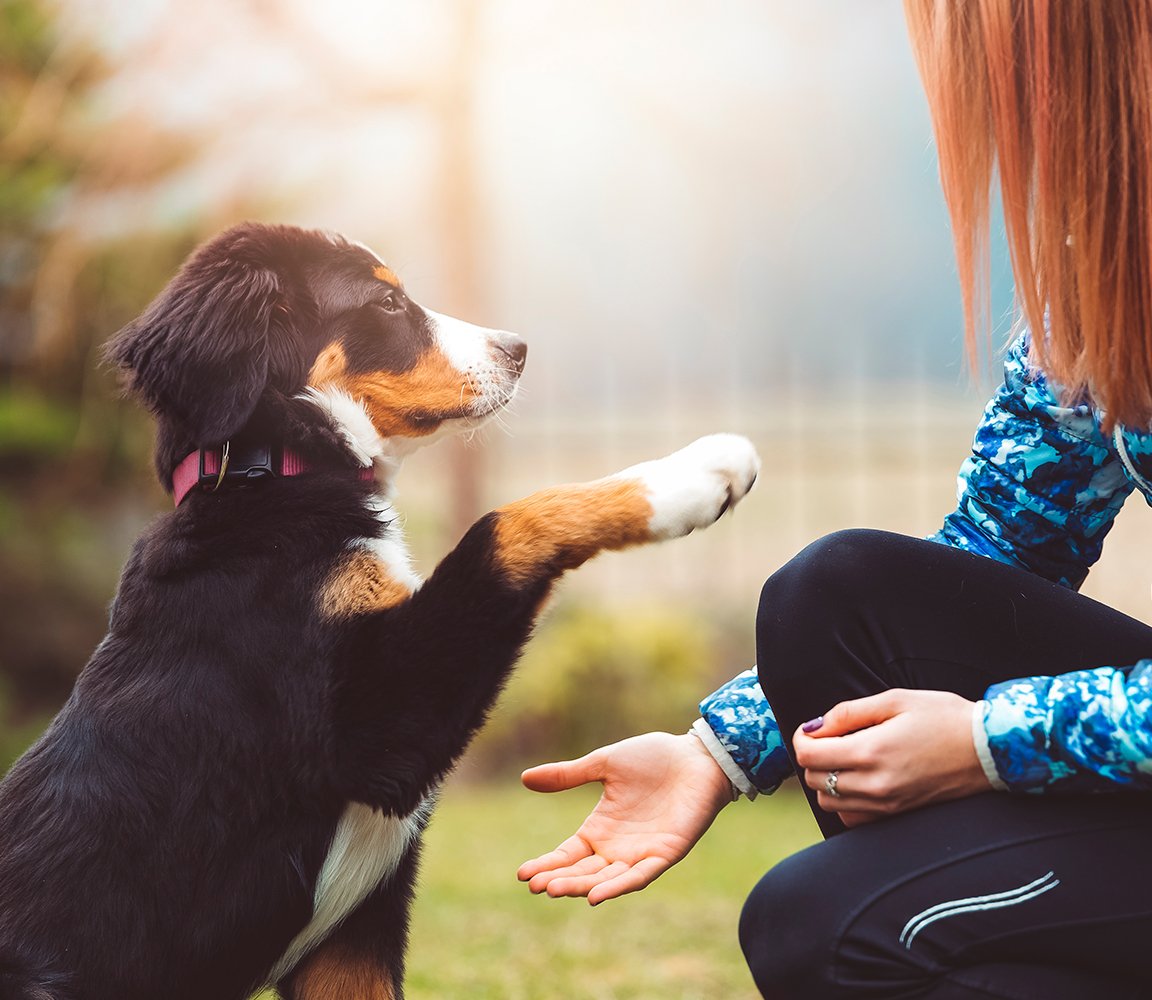 En valp behöver tydliga gränser för vad som är tillåtet och inte och hur den ska uppföra sig. Ett steg på vägen i din uppfostran, är att lära valpen ett antal enklare kommandon som talar om för valpen vad den skall göra. Valpar är fulla av energi och har svårt att fokusera för länge på en sak och därför bör träningen hållas kort och vara varierande, men återkommande. Om du lägger tid på lek och träning kommer banden er emellan stärkas. De flesta valpar kan börja tränas när de är runt 3 månader gamla.
