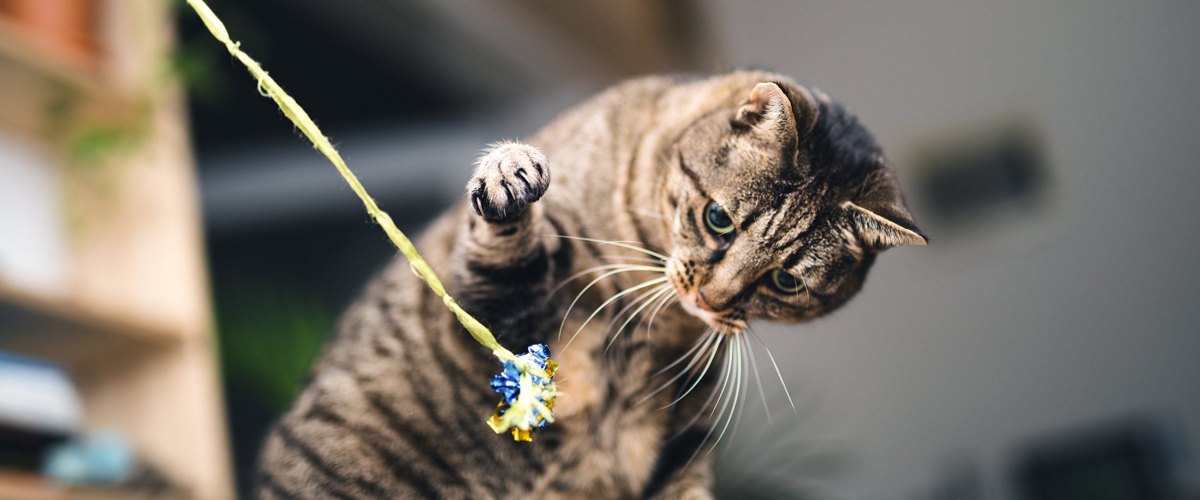 Fysisk aktivitet kan vara till stor hjälp för att hålla din katt i god form. Spendera lite tid varje dag att leka med din katt, det påskyndar processen att bränna överflödigt fett. Vuxna katter behöver minst 20 minuters lektid per dag. Om din katt inte är så förtjust i att leka, eller snabbt tappar intresset, kan du dela upp tiden du leker till flera korta pass.