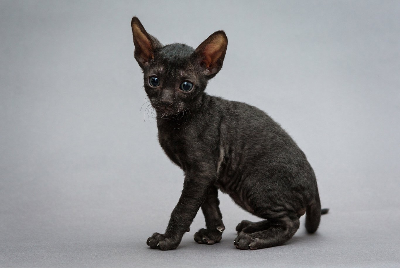 Cornish rex är en kattras känd för deras lockiga päls som endast består av dunhår.
