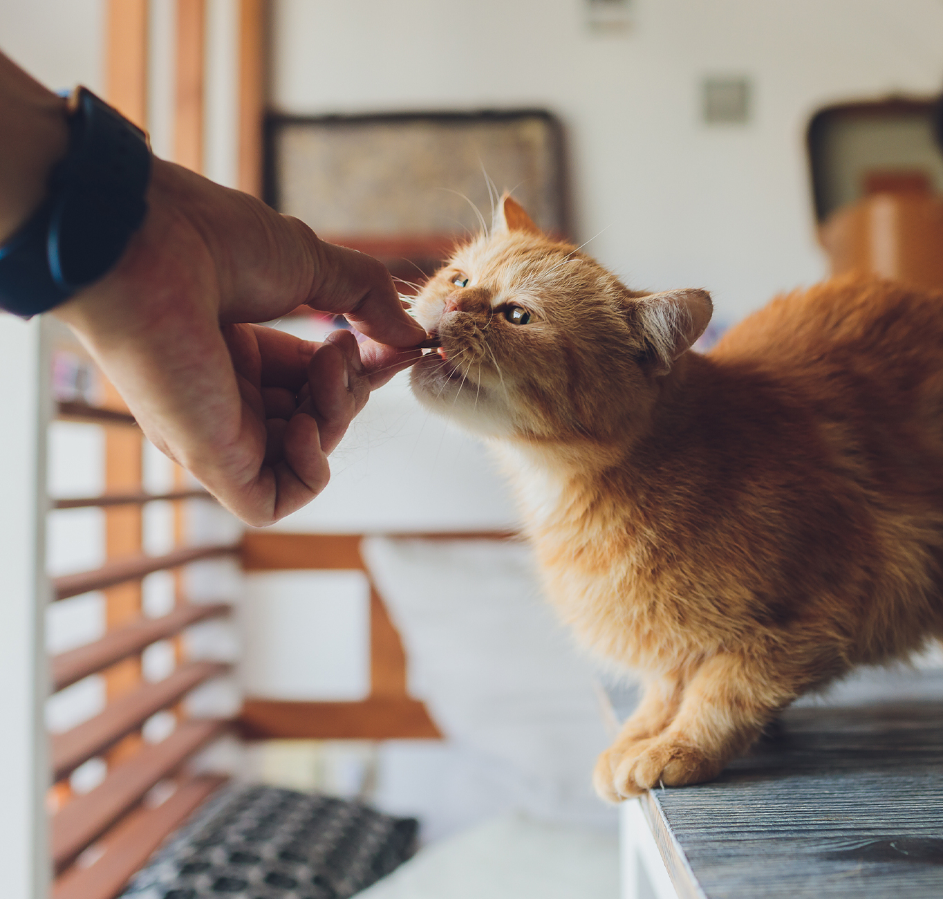 Snacks är inte en ersättning för att leka med din katt, de bör endast användas som ytterligare stimulans för din katt som en del av träningen eller bara som en läckerbit mellan måltiderna. Mata som en del av en balanserad kost. När du ger godisbitar, minska mängden i din katts huvudmåltid för att hålla dem i god form. Övermata inte din katt med snacks. Överdriven användning av snacks kan orsaka magbesvär och potentiellt leda till fetma hos katter och andra hälsoproblem.