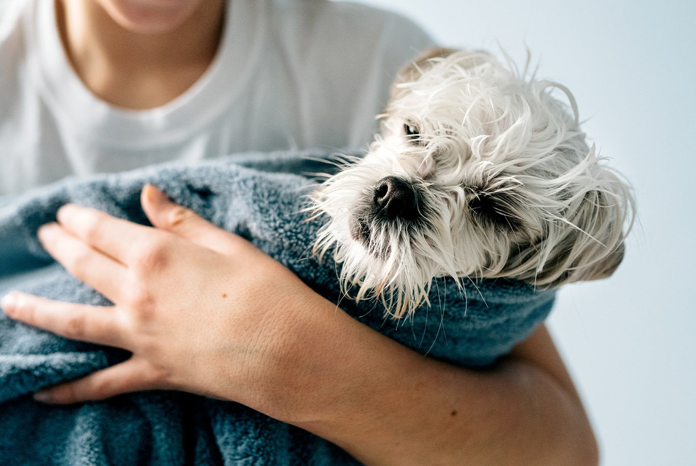 Ta en stor klick i handen och applicera direkt på ditt husdjurs torra päls.